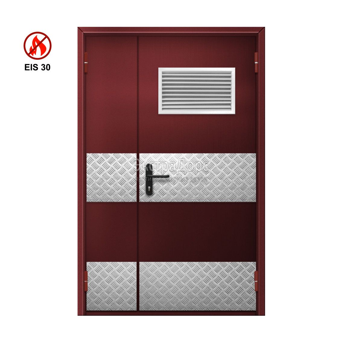Двухстворчатая дверь глухая противопожарная EI 30 ДГ-02-EI-30 двупольная входная с МДФ