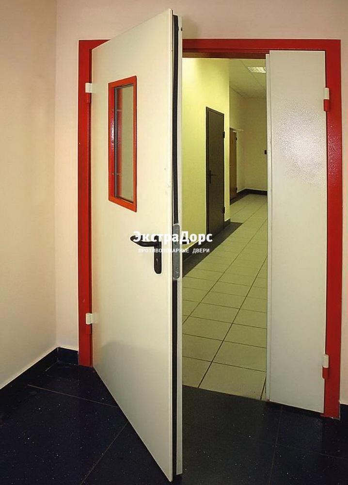Противопожарная дверь двупольная без порога белая со стеклом в Королёве