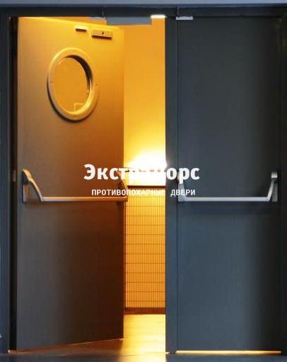 Противопожарная дверь двухстворчатая без порога с иллюминаторами
