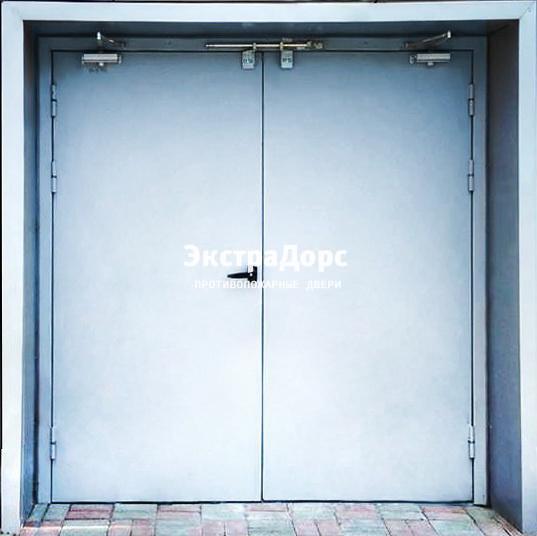 Металлическая противопожарная дверь ДМП-01-60 двупольная серая с замком