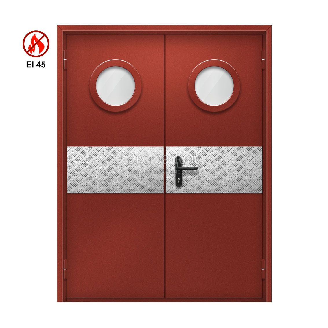Двухстворчатая огнестойкая дверь EI 45 ДОП-02-EI45 ДП121 двупольная остекленная