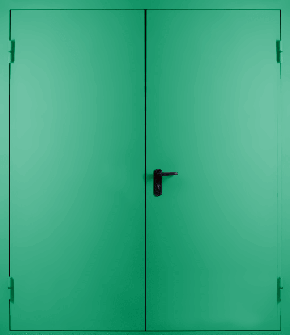 Противопожарная дверь с шумоизоляцией двупольная зеленого цвета в Королёве