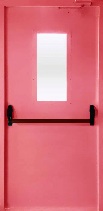 Противопожарная дверь EI 60 дымогазонепроницаемая стальная со стеклом, антипаникой и решеткой