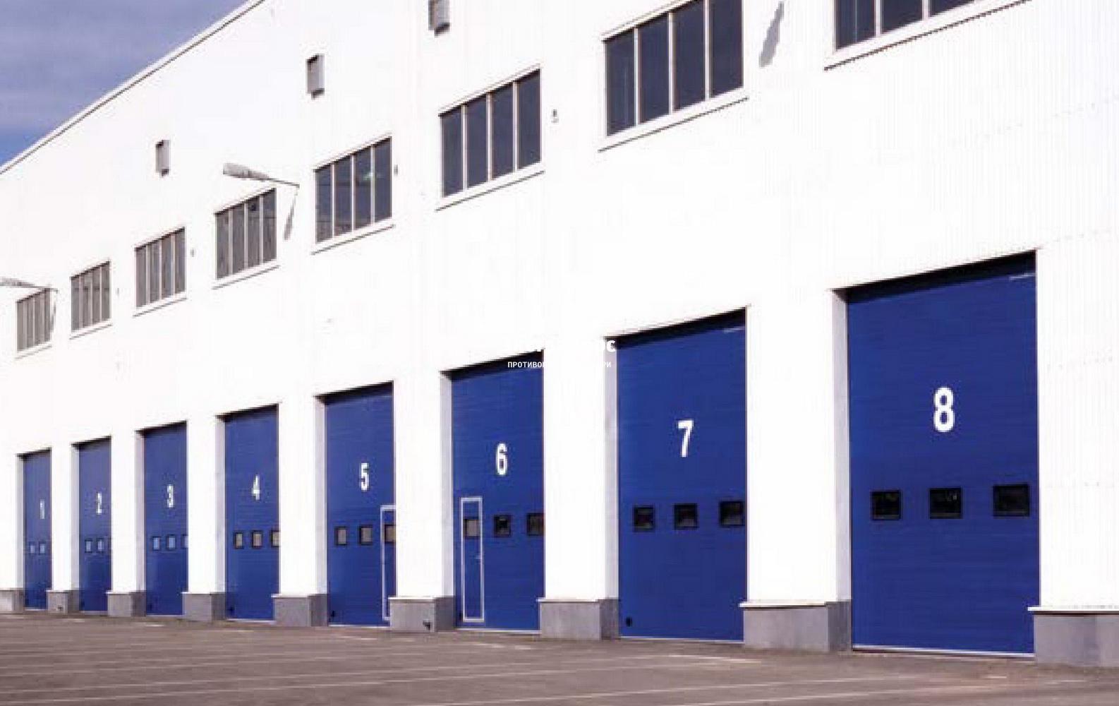 Синие огнеупорные промышленные ворота с окнами в Королёве