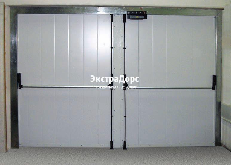 Белые противопожарные распашные ворота с антипаникой в Королёве