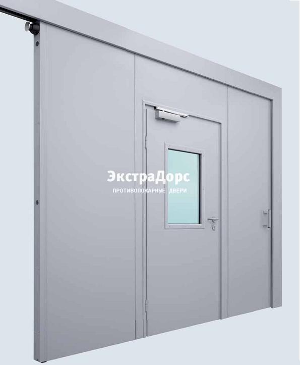 Подъемные противопожарные ворота с окнами и поворотной калиткой