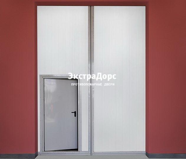 Подъемные противопожарные ворота с окнами и поворотной калиткой