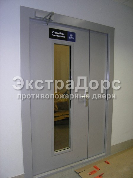 Двухстворчатая противопожарная дверь с прямоугольным стеклом в Королёве