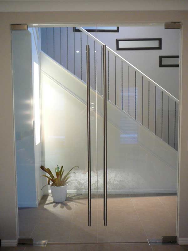 Противопожарная безрамная дверь со стеклом в частный дом в Королёве